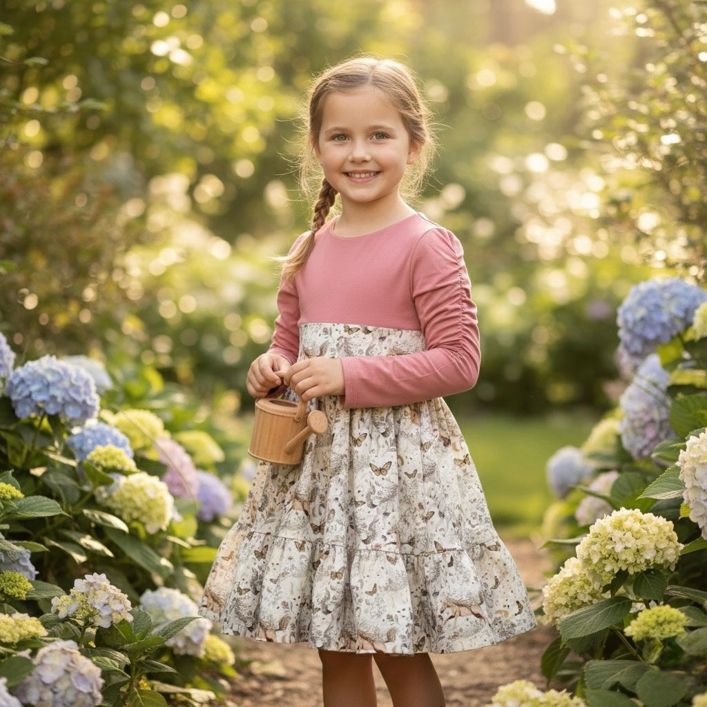 Capture hearts and imaginations with this enchanting dress from Young World by Ruth! Crafted in a dreamy rose-pink bodice and finished with a magical Horse-print skirt, it’s designed to make your little one feel like they’ve stepped straight into a fairy tale. From the delightful ruching on the sleeves to the show-stopping bow at the back, every detail adds a dash of wonder to every twirl. Perfect for birthdays, tea parties, or simply brightening an ordinary day. This dress promises comfort, style, and a spark of imagination. Don’t miss your chance to bring home this whimsical wardrobe treasure—order now and let your child’s next adventure begin in storybook fashion!