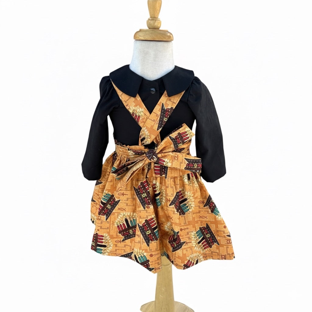 - Two-piece set – Mae Blouse (black) & Leone Skirt (Kwanzaa print)